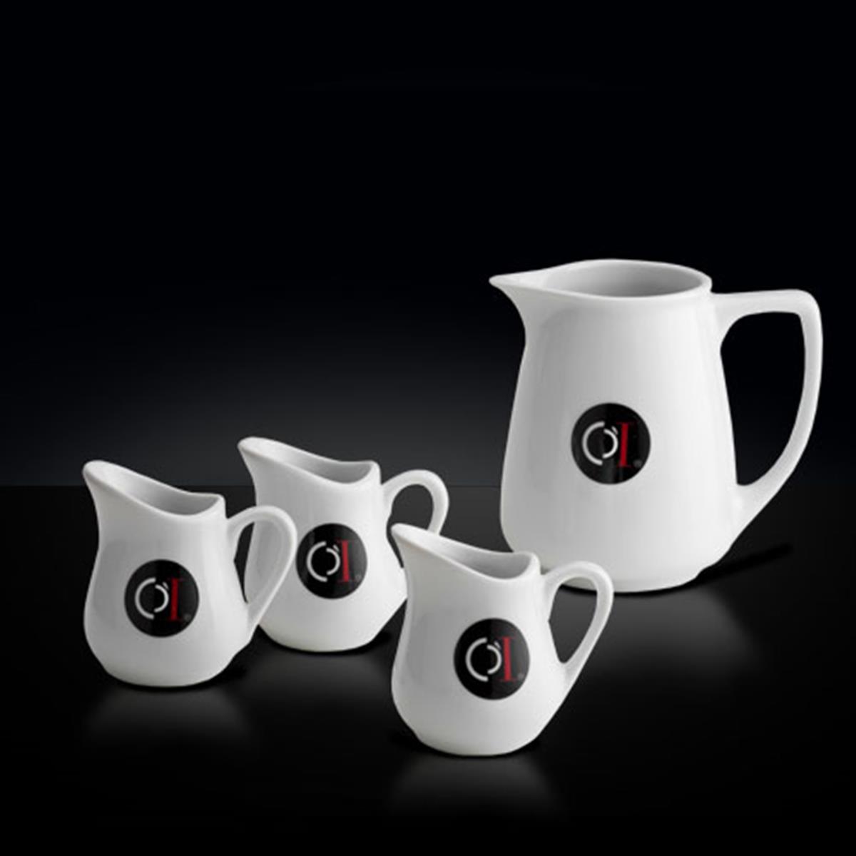 Grote melkkan in wit porselein 320cc met het logo van Caffè d'Italia.